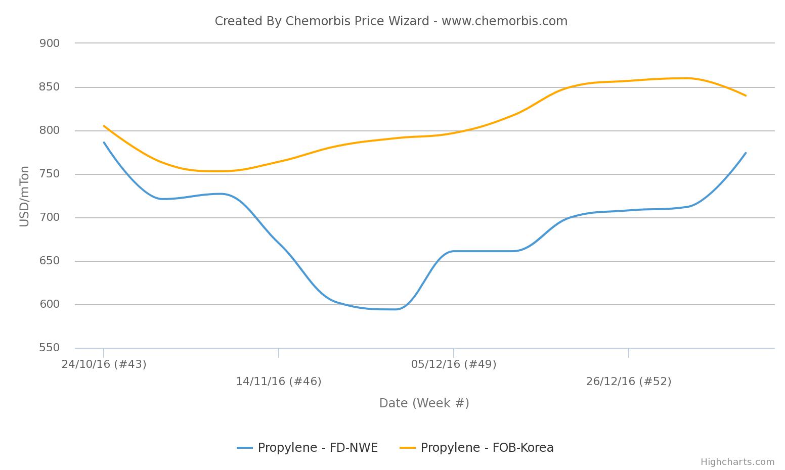 وارتفعت أسعار البروبيلين الفورية بأوروبا بنحو 65 يورو/طن على مدار الأسبوع الماضي لتُسجل حاليًا مستوى الـ735 يورو/طن على أساس FD شمال غرب أوروبا تماشيًا مع انتعاش أسواق الـPP في حين انخفضت أسعار البروبيلين الآسيوي مؤخرًا نتيجة انخفاض الأسعار في أسواق الخامات التحويلية التي انخفضت بنحو 25 يورو/طن عند مستوى الـ840 يورو/طن على أساس FOB كوريا خلال الفترة نفسها.
