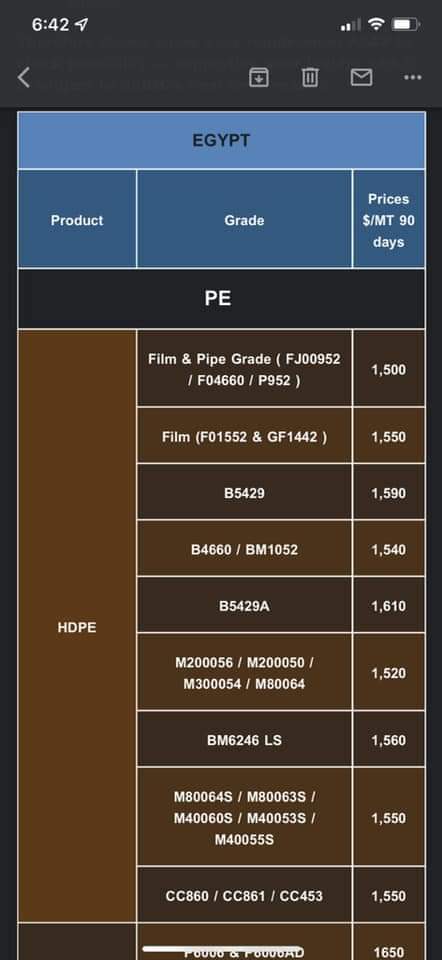 رد: اسعار شركة ســـــــــابـك مصر اكتوبر2021