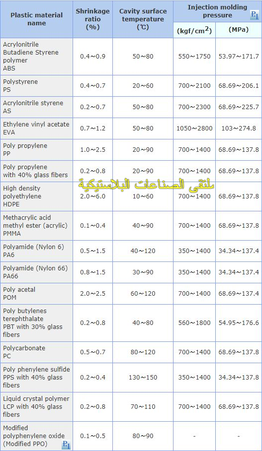 رد: نسب انكماش صب المواد البلاستيكية الرئيسية
