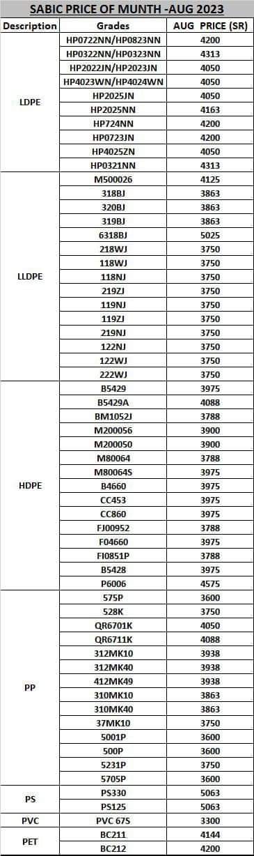 اسعار شركة سابك اغســـــــطس 2023
