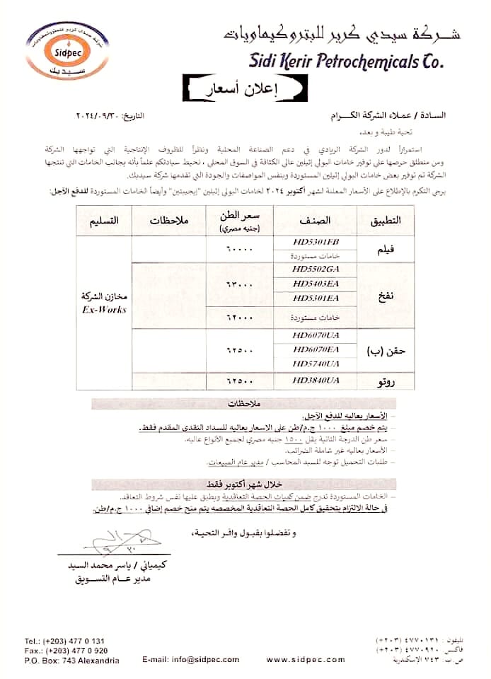 اسعار شركة سيدي كرير شهر اكـــتـــوبـر2024