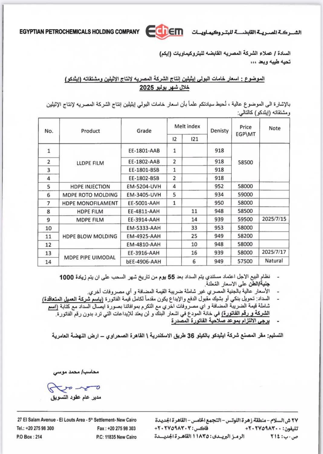 اسعار الشركة المصرية القابضه للبتروكيماويات يــــوليو 2025