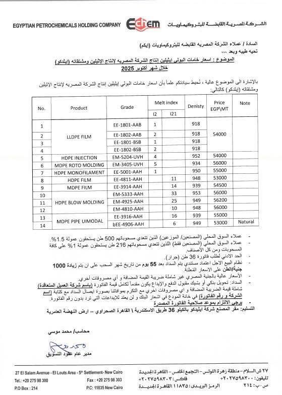 اسعار الشركة المصرية القابضه للبتروكيماويات اكتوبر 2025